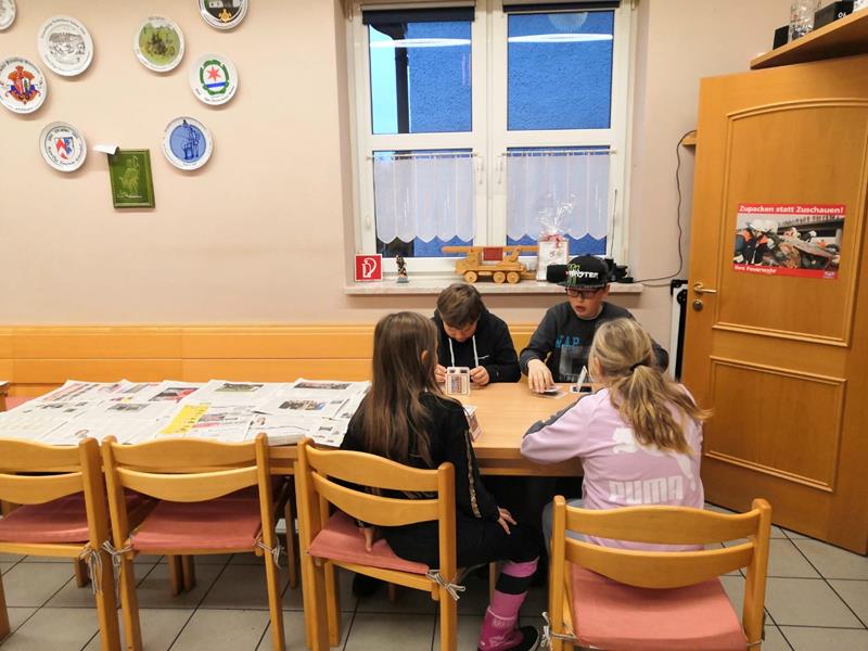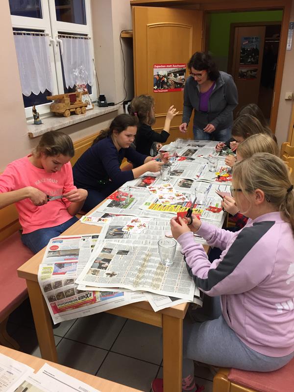 BRAND - Unsere Kinderfeuerwehr bastelte zusammen mit dem Betreuerteam weihnachtliche Teelichter mit der Serviettentechnik. Zusätzlich konnten die ehemaligen Gläser noch nach Wahl verziert werden. Bis zum nächsten Kinderfeuerwehrtreffen müssen diese jedoch noch gut trocknen. Je nachdem wie schnell die Kinder fertig waren, beschäftigten sie sich noch selbst z. B. mit dem klassischen Kartenhaus-bauen oder ein paar Spielen. Nebenbei haben wir noch die letzten fehlenden Bidler für unsere Fotowand geknipst.