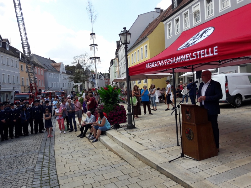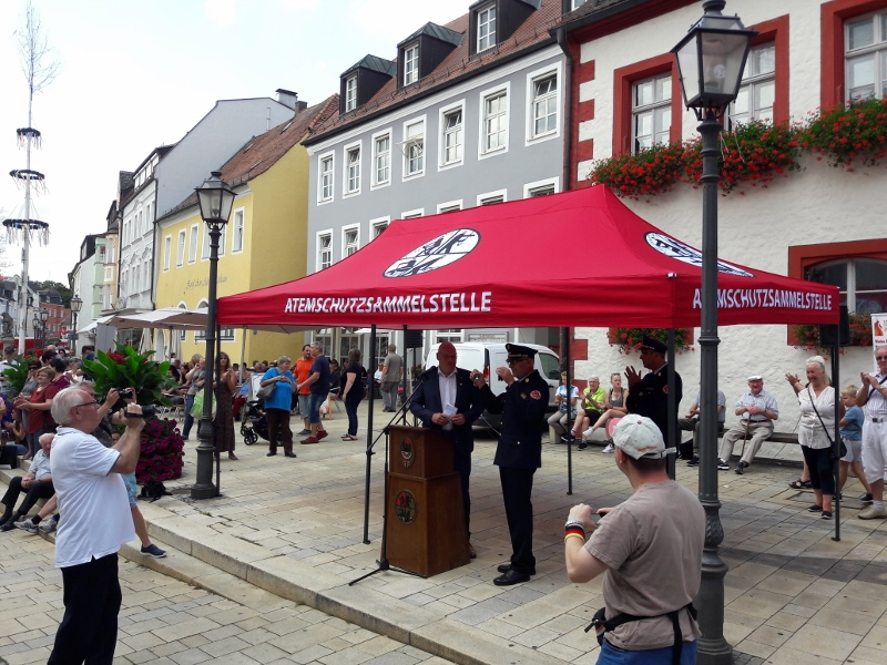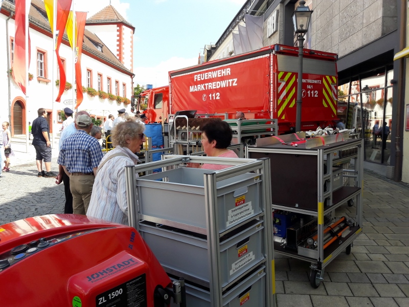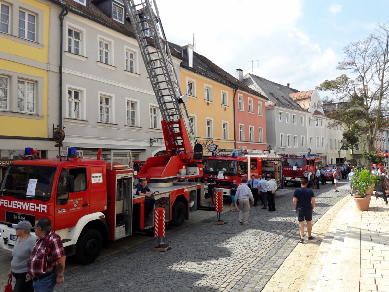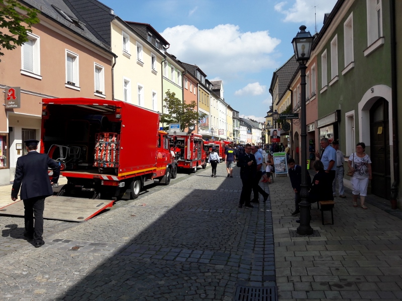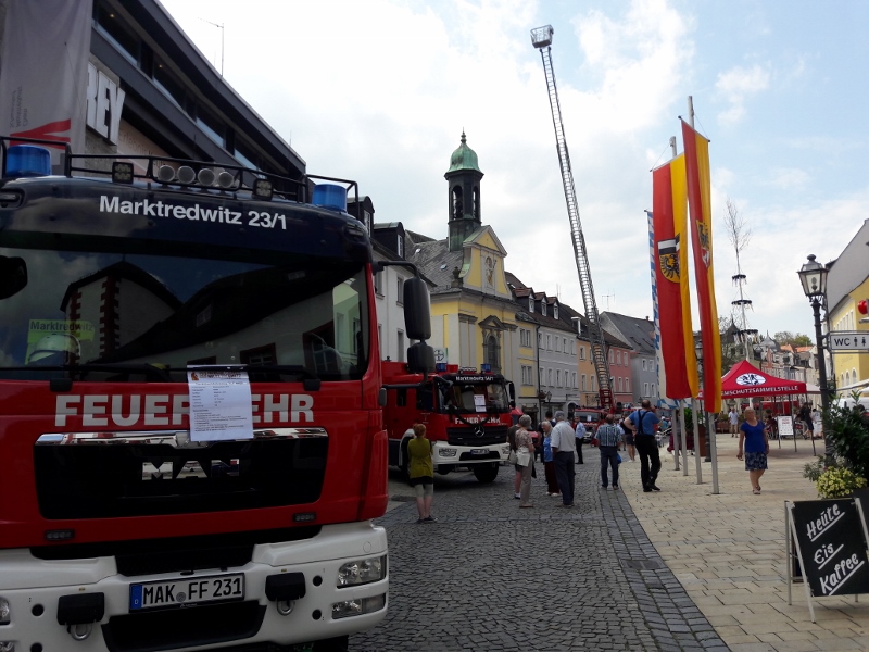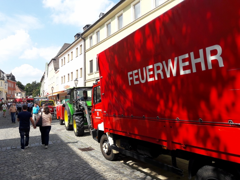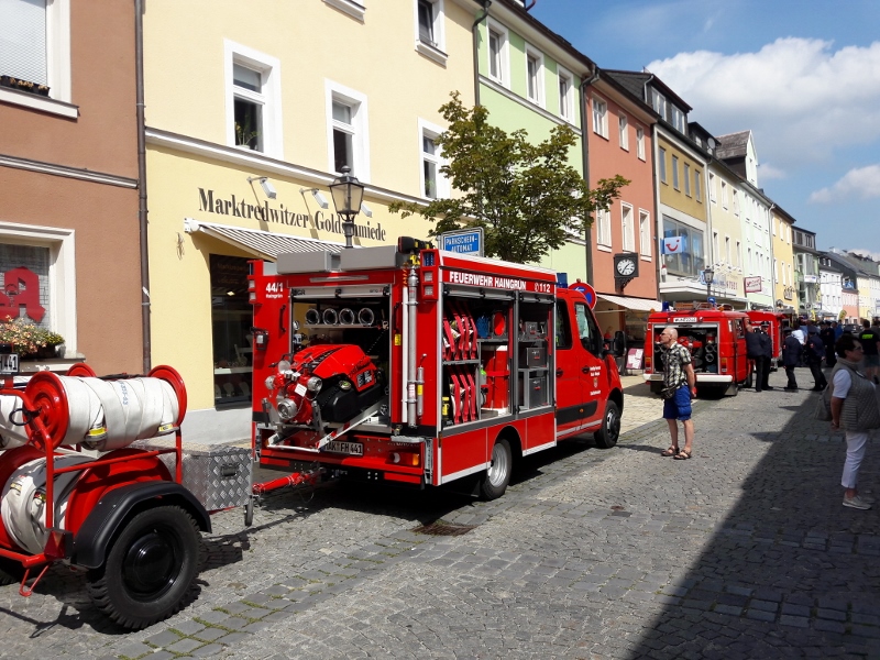 MARKTREDWITZ - Im Zuge des 150-jährigen Jubiläums der Feuerwehr Marktredwitz fand bei der Kirchweih in Marktredwitz zusätzlich eine Ausstellung aller Einsatzfahrzeuge der Feuerwehren aus dem Stadtgebiet Marktredwitz teil. Außerdem wurden der FW Marktredwitz ein neuer Einsatzleitwagen, ein Versorgungs-LKW und ein Zelt für de Atemschutzsammelstelle übergeben.
